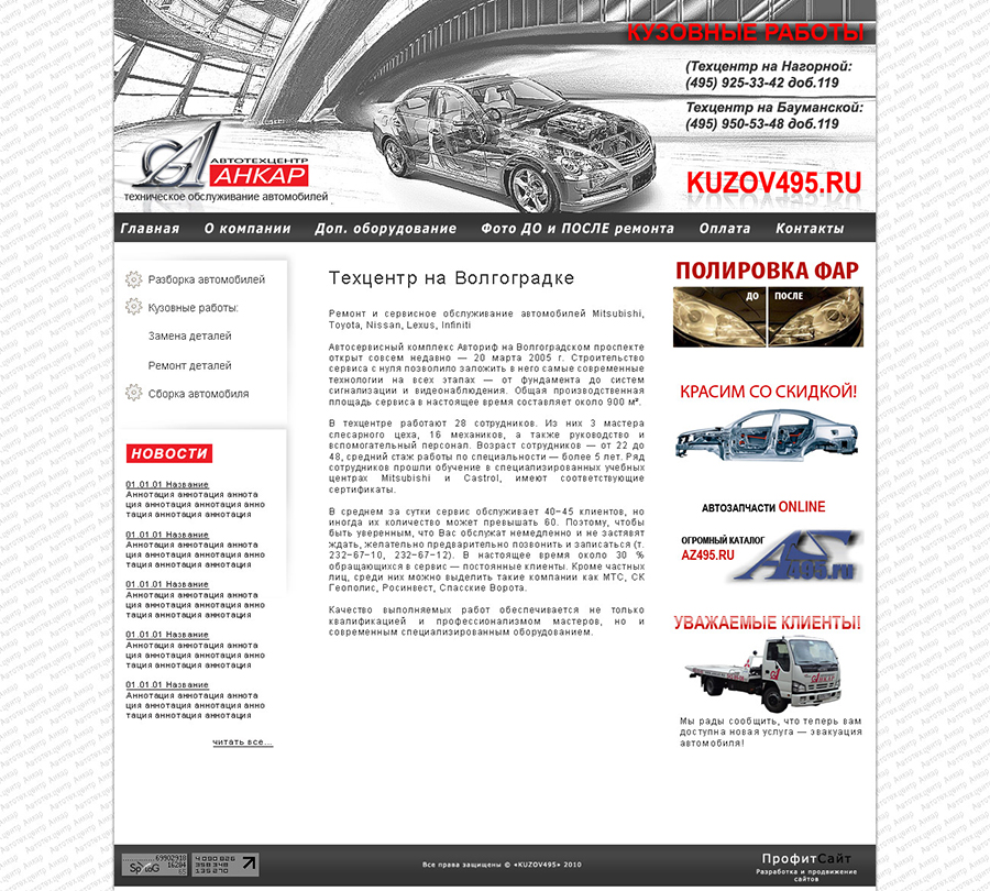 Финальный макет сайта кузовных работ.
