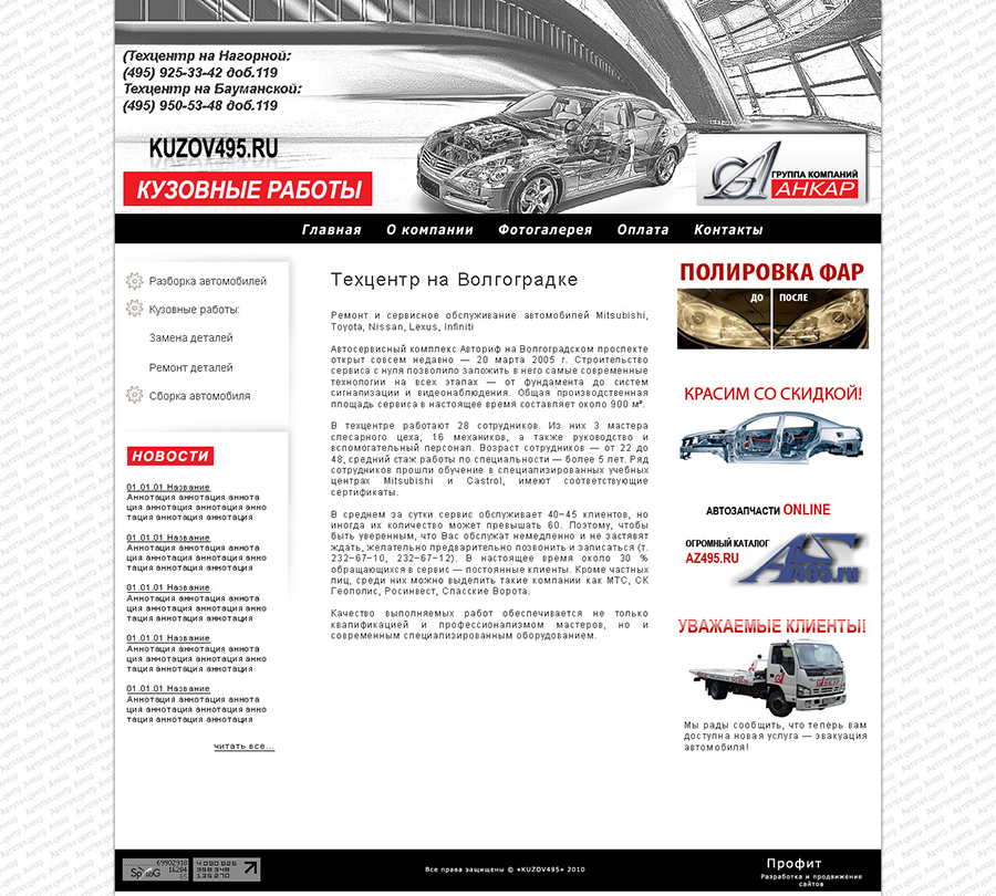 Промежуточный макет сайта кузовных работ.