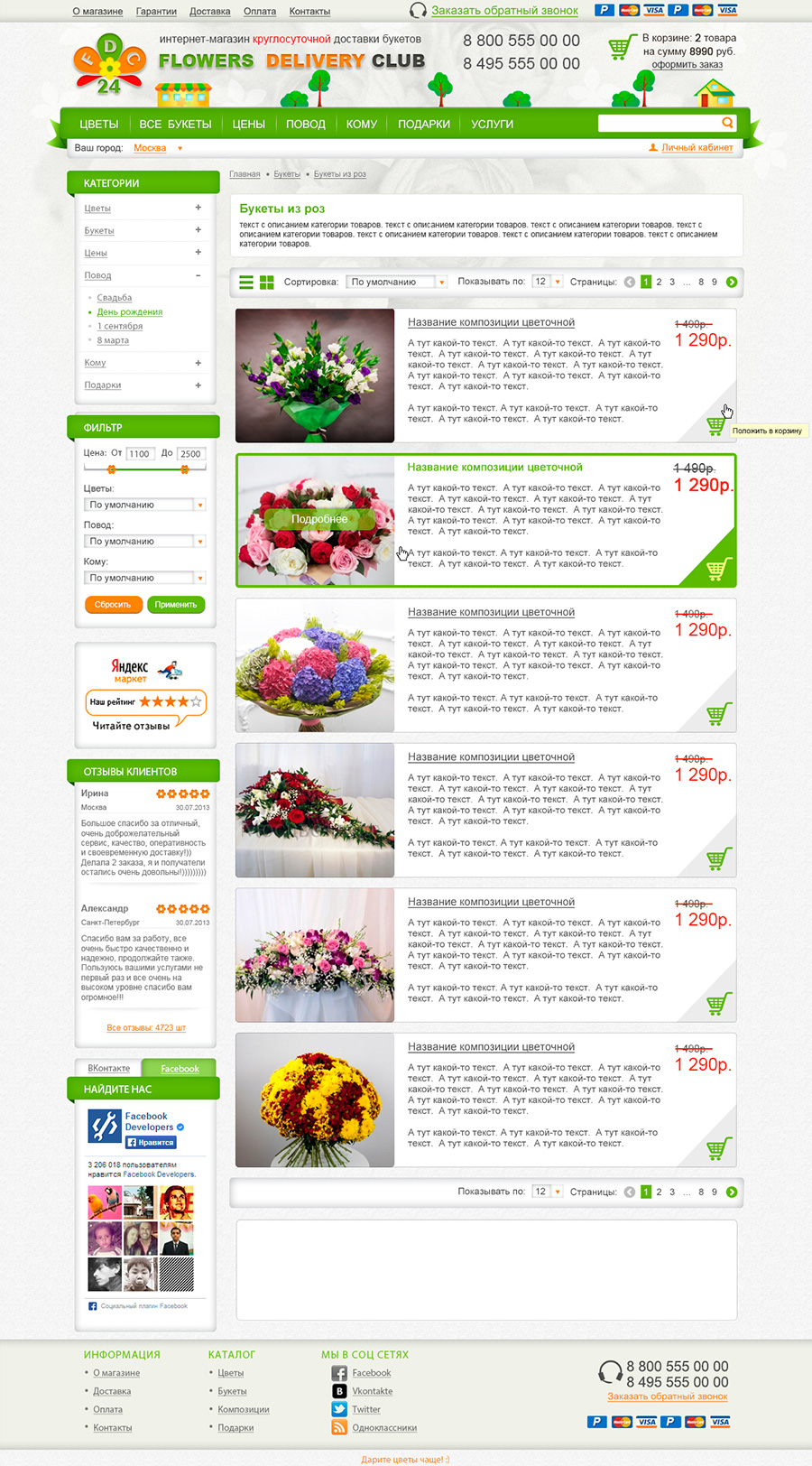 Страницы каталога (расположение товаров в виде плитки).