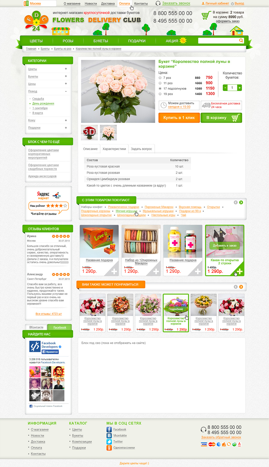 Карточка товара. Всплывающее окошко "заказ в 1 клик".