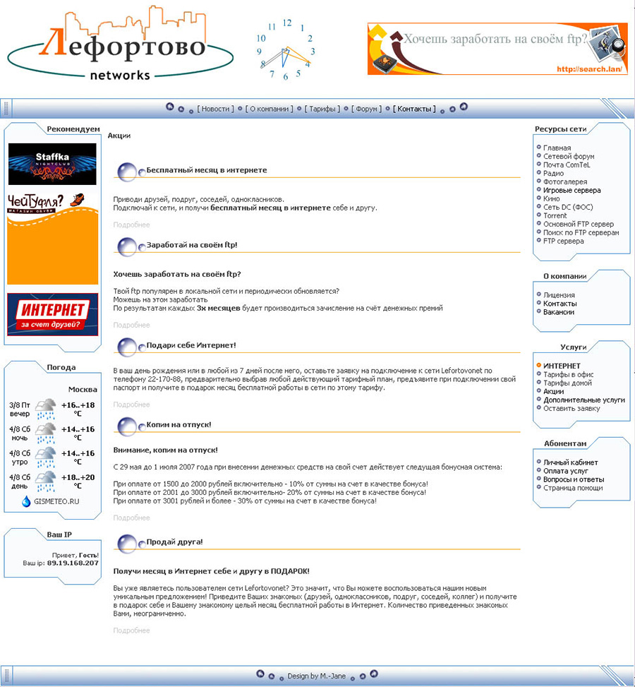 Финальная версия сайта (работал до момента перекупки провайдера более крупной компанией)/