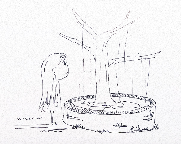 В итоге ягодами объелась так, что у меня даже икота началась. Поэтому назад к замку я шла медленно, наслаждаясь садовыми дорожками, цветами, скульптурами и фонтанами. Время от времени садилась на лавочки и любовалась окружающим меня видом. Единственное, что меня огорчило, это исчезновение полосатого кота. Я тебе писала об этом фонтане раньше. Так вот, дерево всё ещё стоит на месте, всё так же красиво струится вода... А вот кота... будто и не было там. Предположить, что его кто-то спилил или срезал — нельзя. Ветка выглядит цельной, нетронутой. Даже начала было сомневаться в себе, может мне позавчера он просто померещился? Но ведь раньше у меня никогда не было галлюцинаций. Тогда это просто очередной фокус замка? Ну... скажем, кота забрали на реставрацию (вдруг у него какая полоска проржавела). Пишу и самой смешно становится от подобных мыслей. Кажется, я уже чушь начинаю нести от волнения.