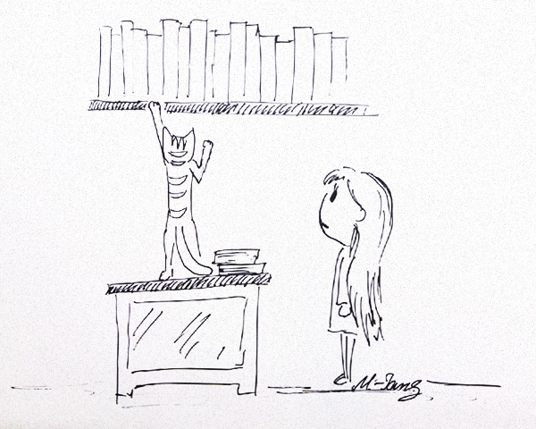 Кажется последнее я сказала вслух, потому что кот вдруг замолчал, серьёзно посмотрел на меня и решительно направился в кабинет Эаланды, временами оборачиваясь и смотря, следую ли я за ним. Запрыгнув на письменный стол, он встал на задние лапы и указал на книгу на полке сверху. Так как других вариантов всё равно не было, мне оставалось только послушаться кота. Правда одной книгой он не ограничился... Набрав целую стопку, мы вернулись в комнату с рисунком.
