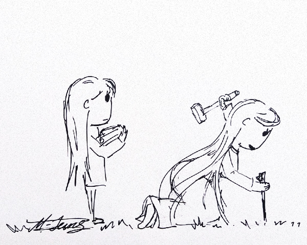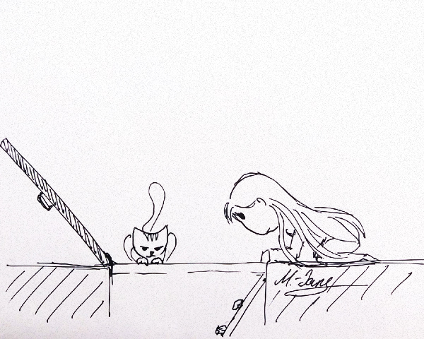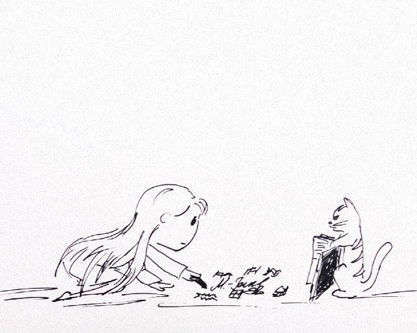 А дальше был до-олгий процесс перелистывания по страницам в ожидании, пока кот не ткнёт лапой в нужный символ, а потом попытка воспроизводства его мелом на полу. Если у меня получалось плохо, кот просто стирал мою работу или шипел на меня, заставляя переделывать.