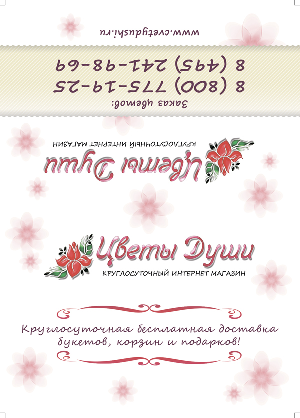 Разработка макета открытки для букетов. Разработка макета для печати на пакетах.