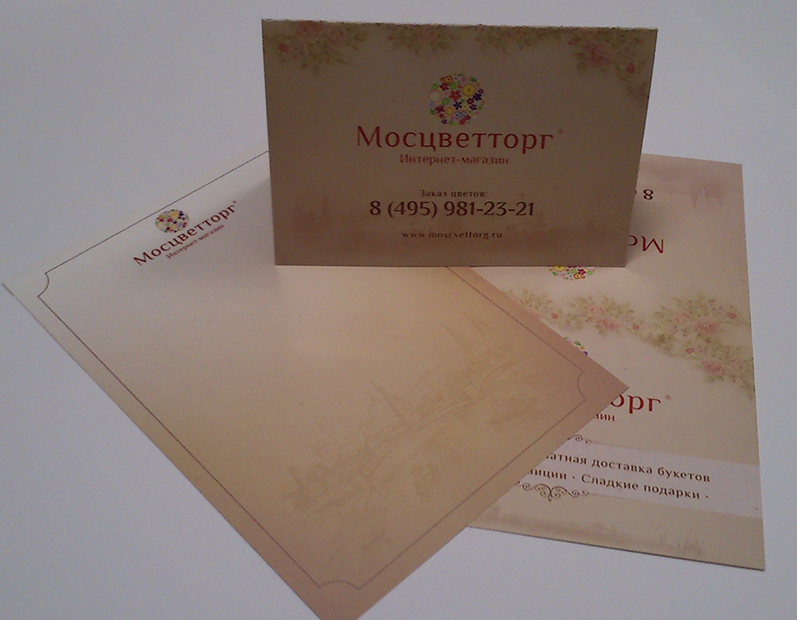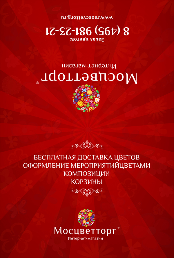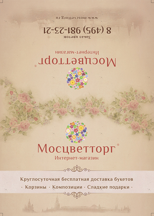 Разработка макета открытки для букетовк заказам для интернет-магазина Мосцветторг.