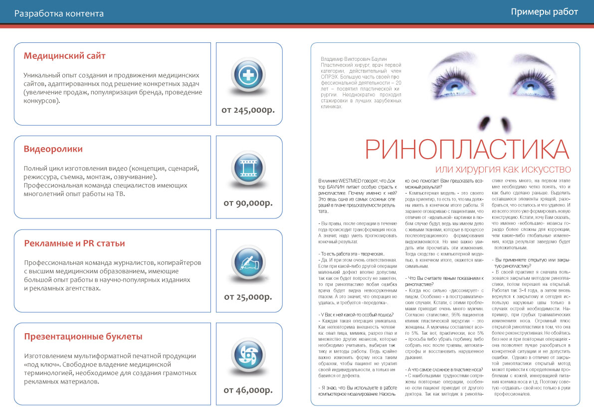 Разработка контента. Примеры работ.