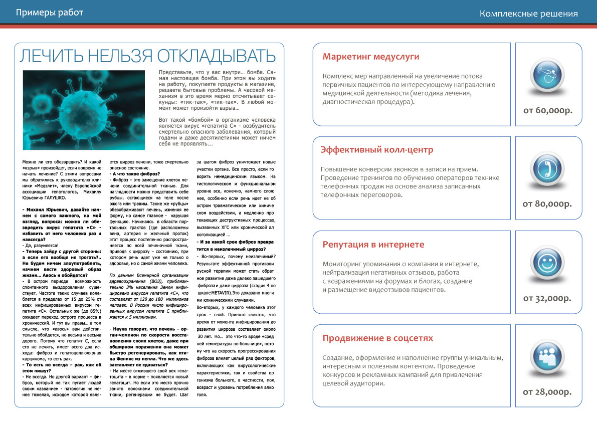 Разработка и оформление разворотов буклета для полиграфии.