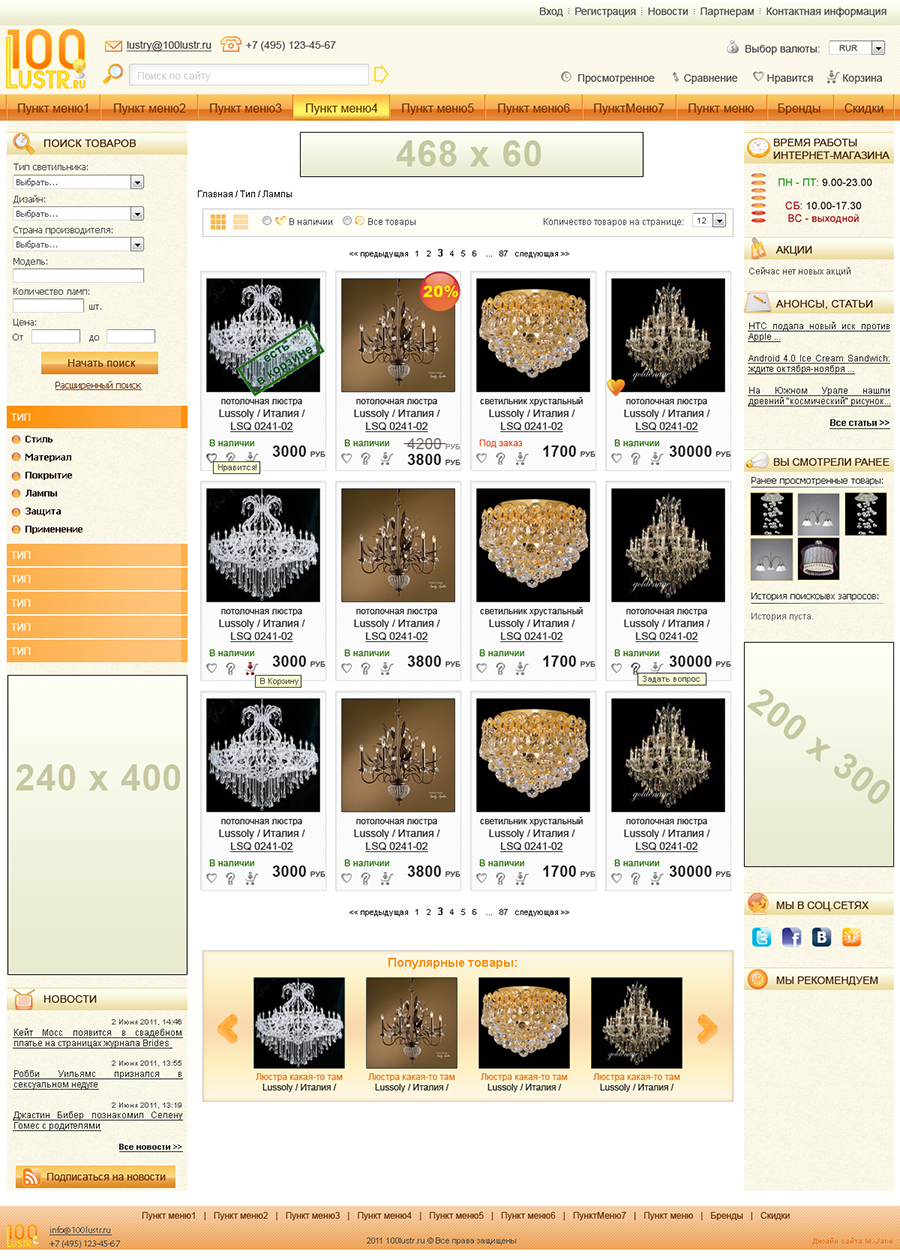 Страница каталога (отображение в виде плитки).
