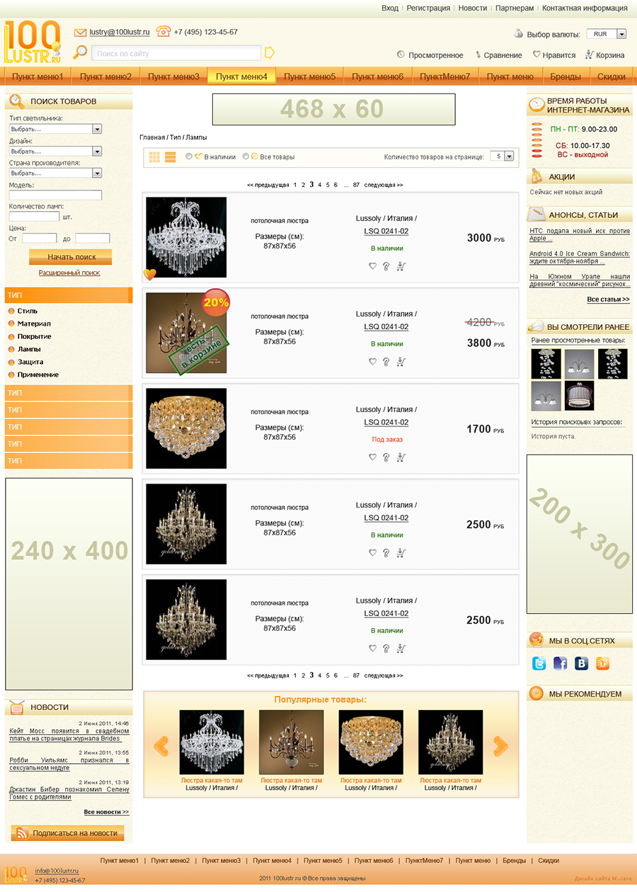 Страница каталога (построчный вывод товаров).