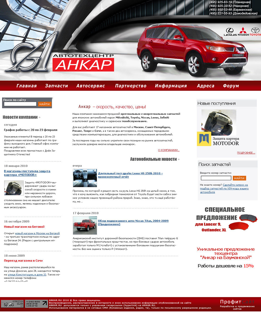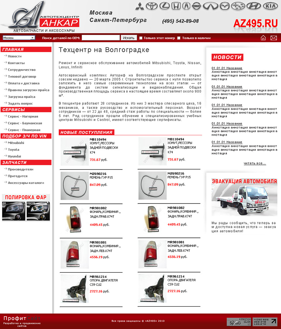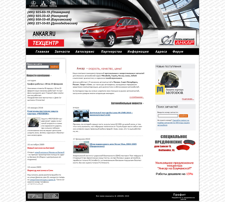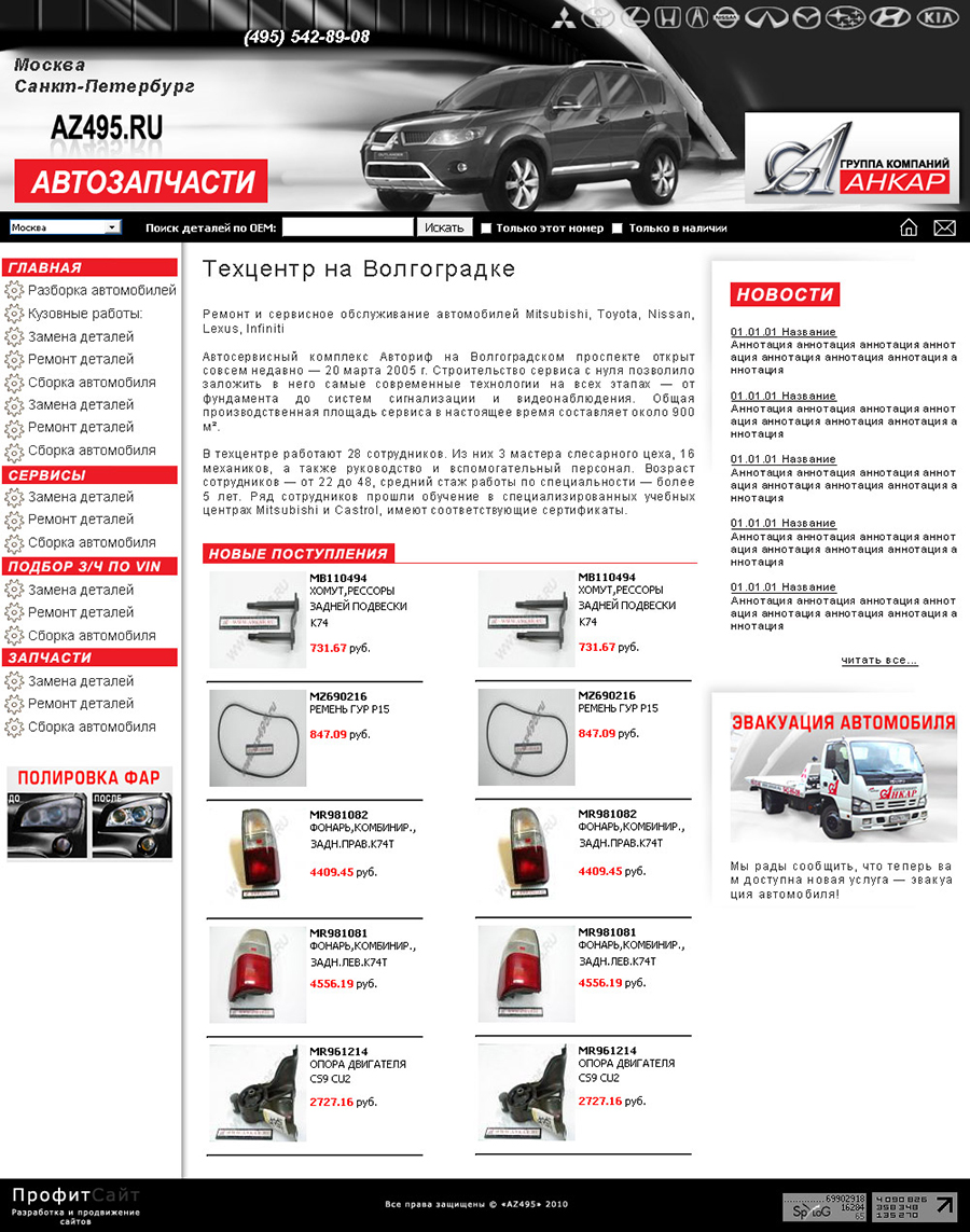 Дизайн сайта автозапчастей.