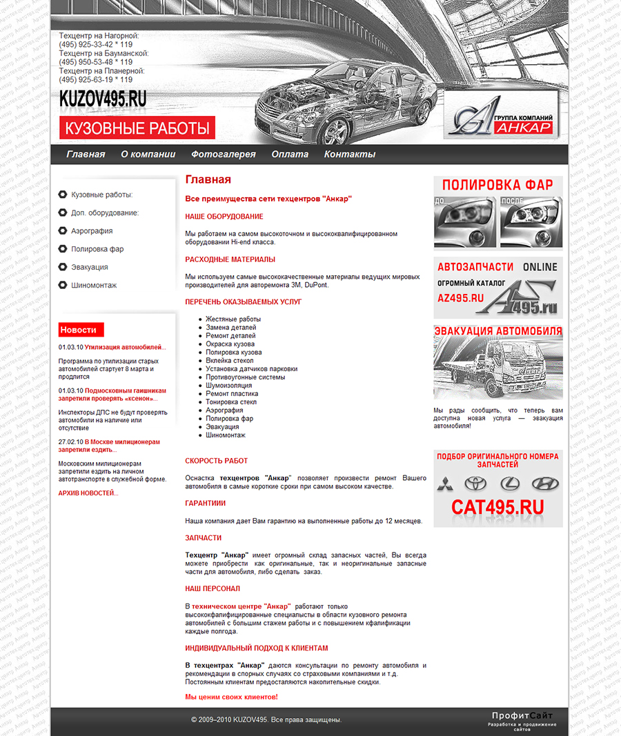 Промежуточный макет сайта кузовных работ.