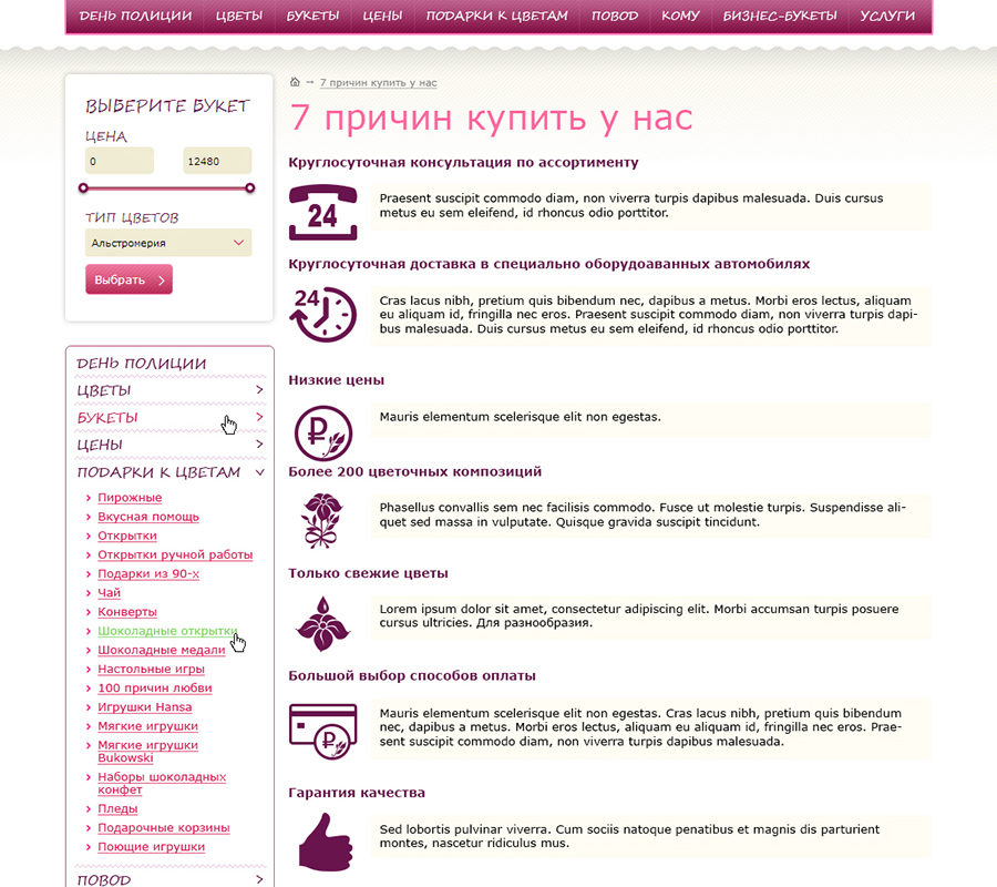 Разработка дизайна внутренних страниц сайта. Разработка акционных баннеров. Доработки дизайна сайта.