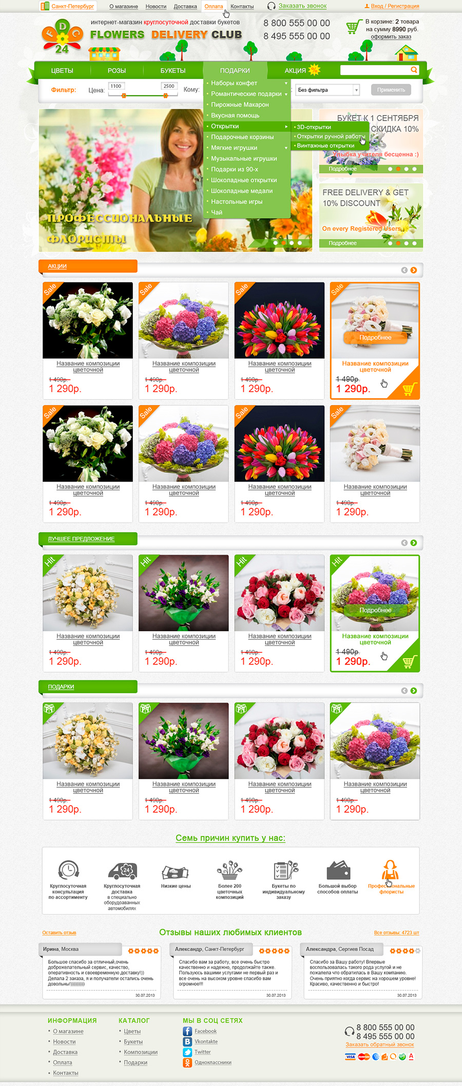 Карточка товара (для подарков с выбором вкусов).