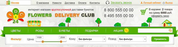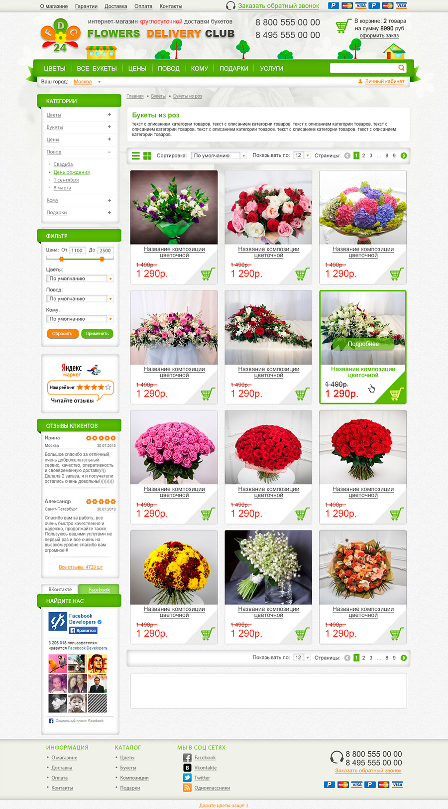 Страницы каталога (расположение товаров в виде плитки).