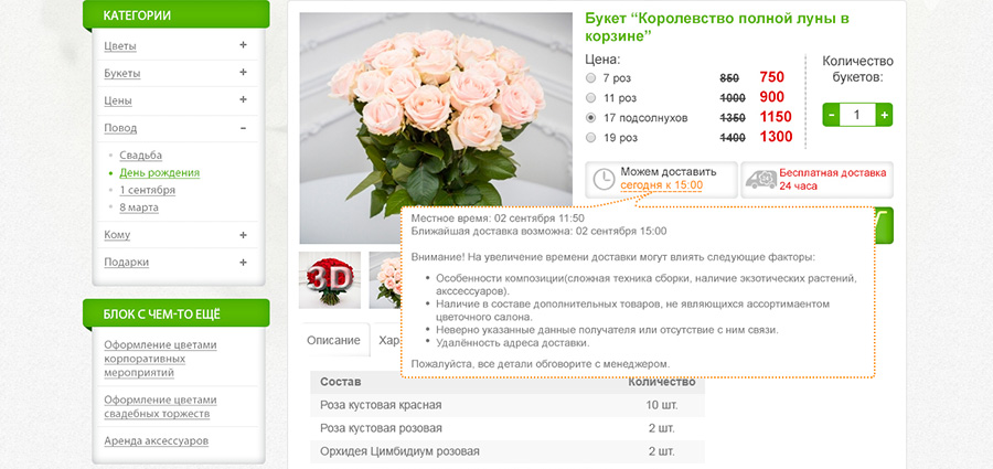 Карточка товара. Подсказка о доставке.
