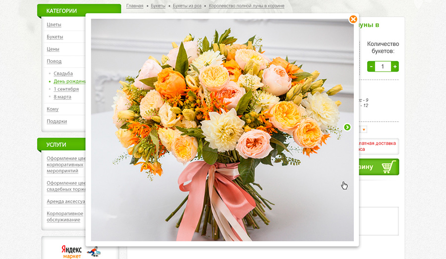 Карточка товара. Всплывающее окошко с фото.