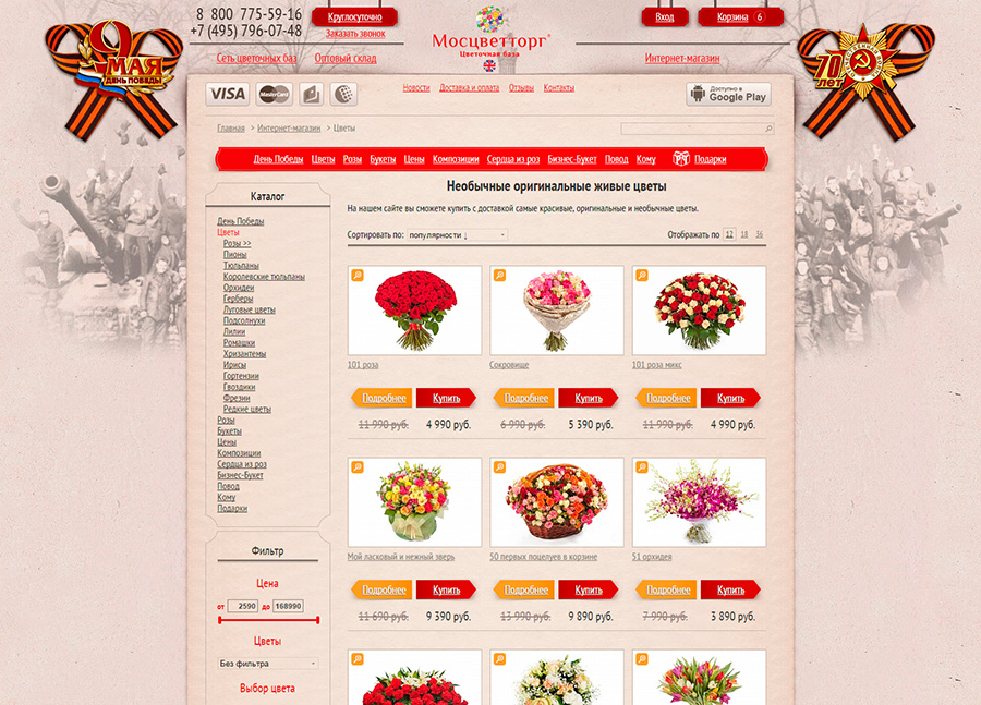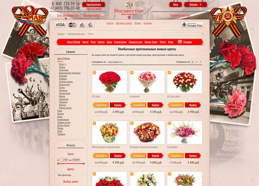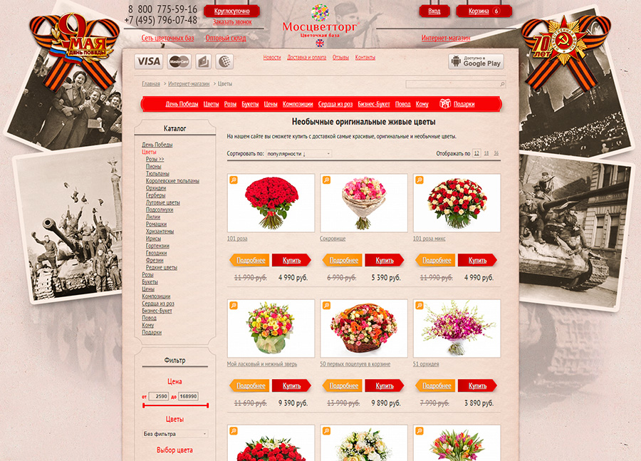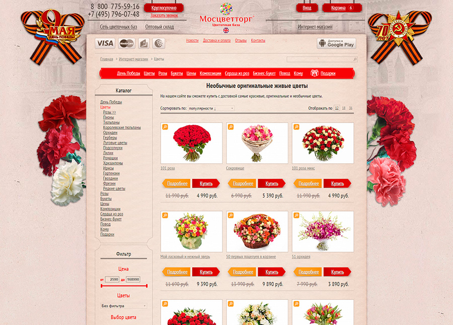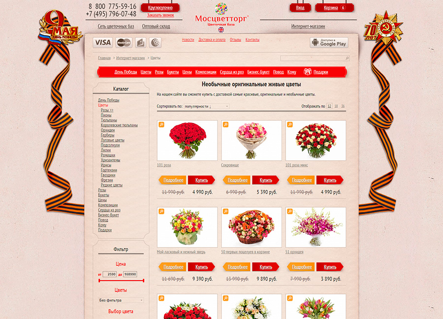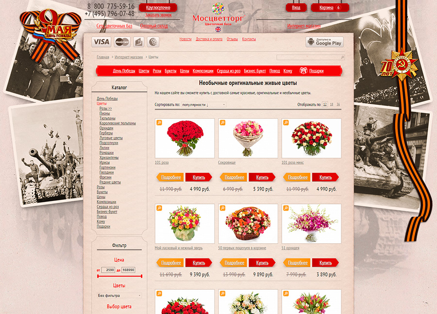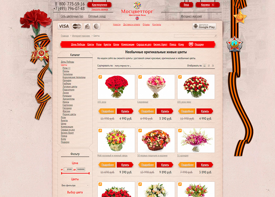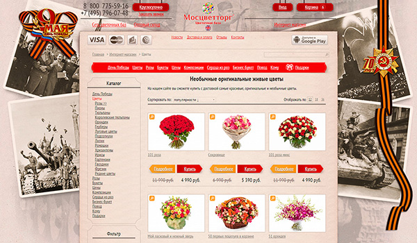 Оформление сайта Мосцветторг к 9 мая