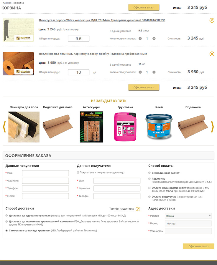 Страница корзины.