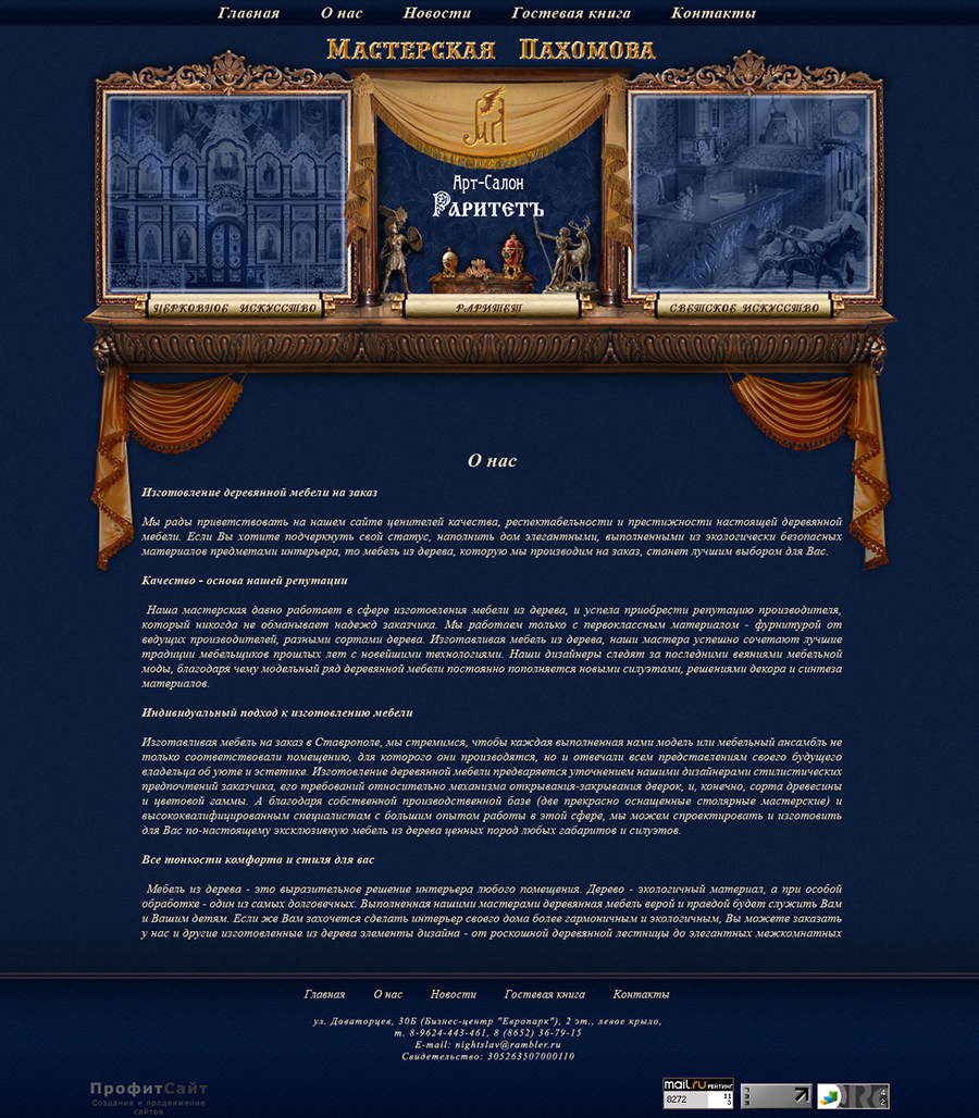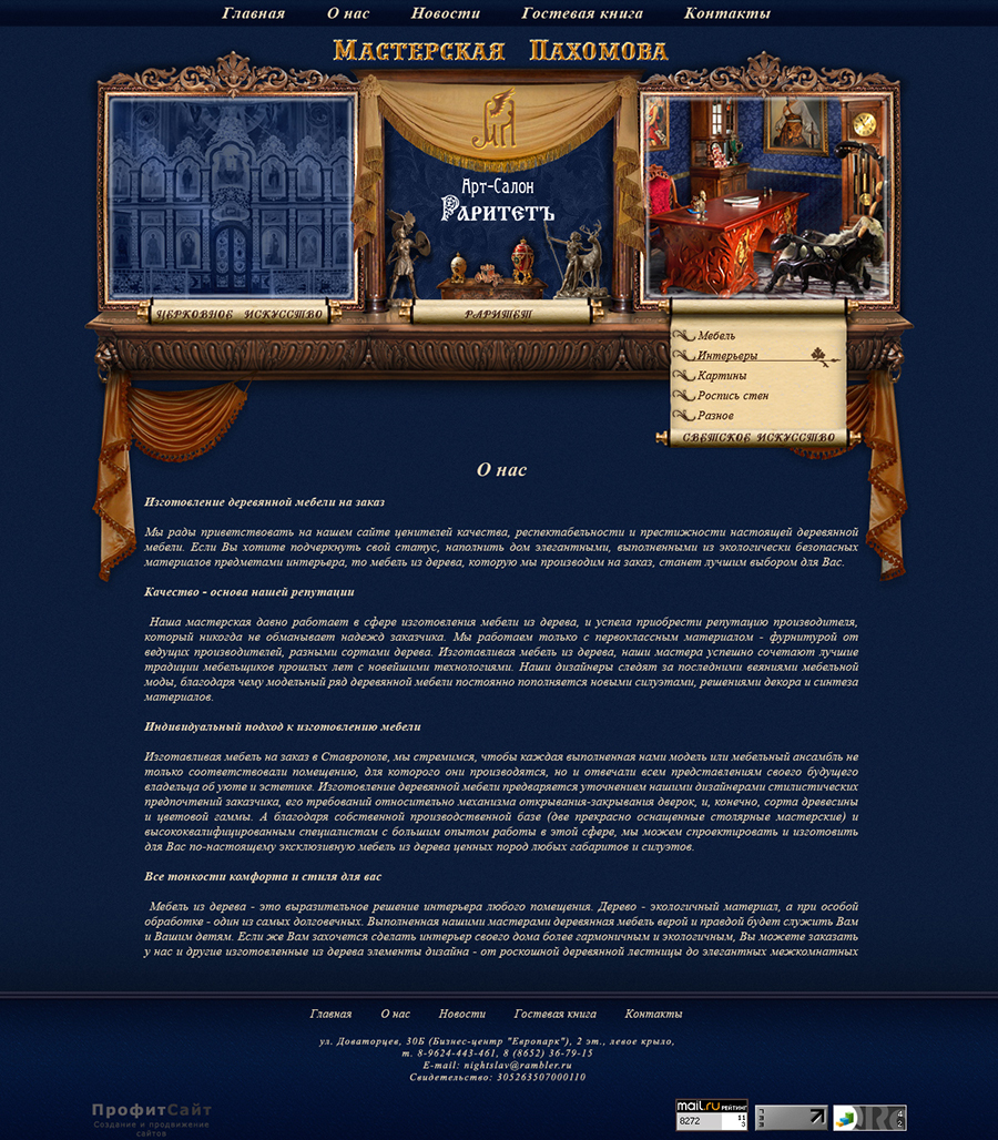 Внутренние страницы. Дизайн разрабатывался по заказу студии ПрофитСайт.