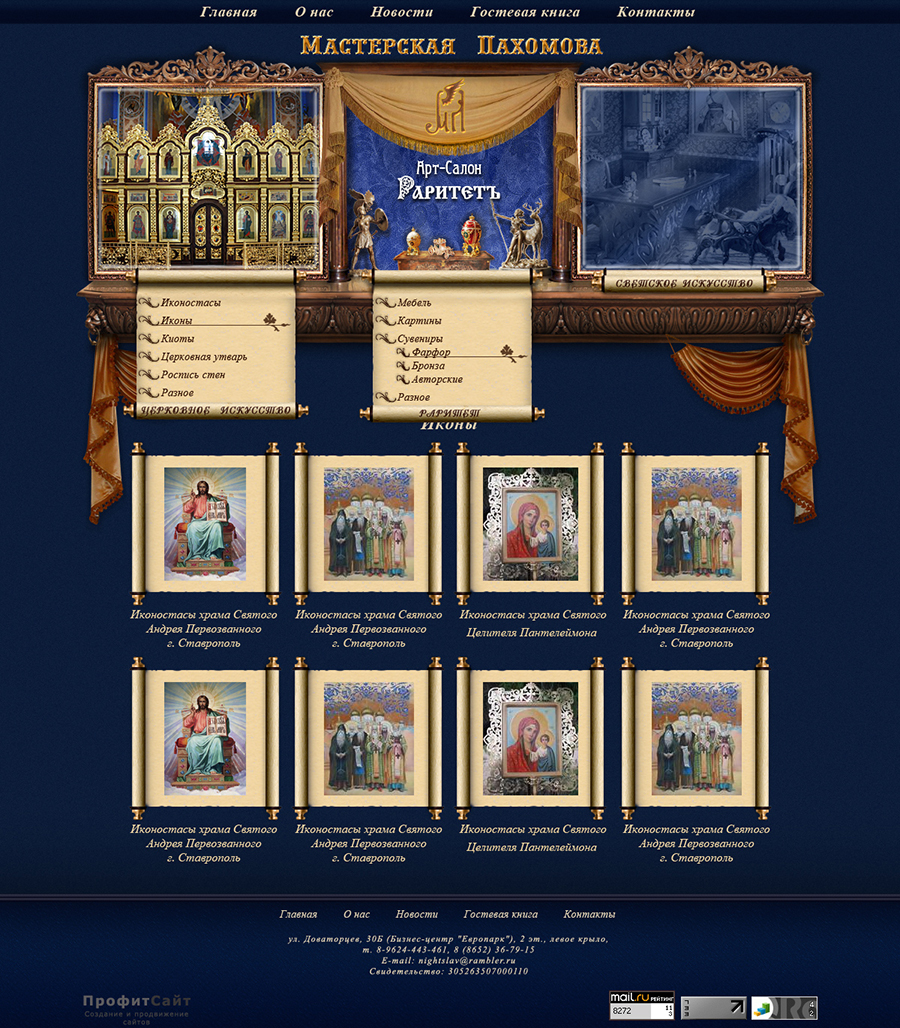 Входная страница (при наведении курсора на соответствующие разделы). Дизайн разрабатывался по заказу студии ПрофитСайт.