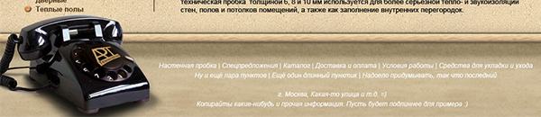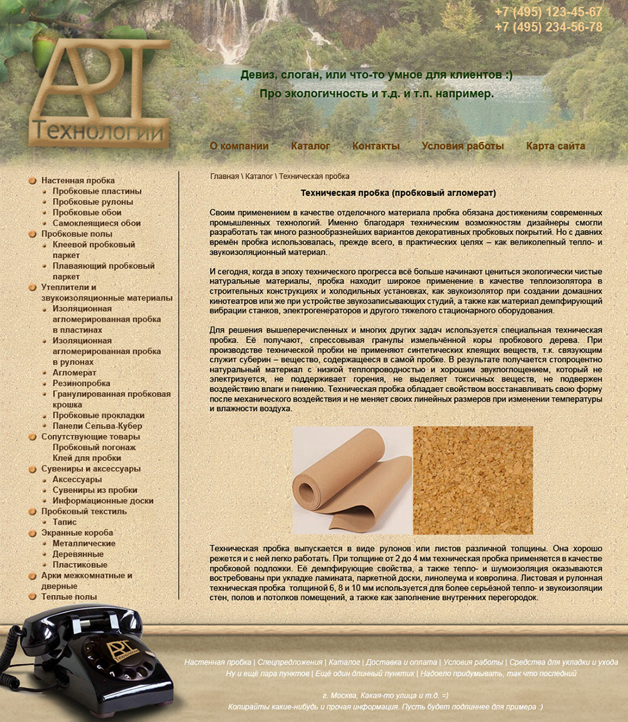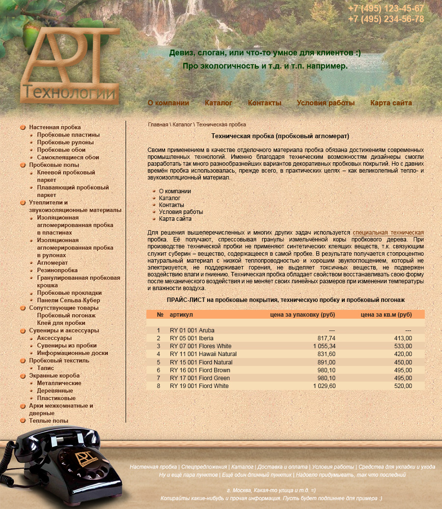 Внутренняя страница каталога (оформление таблиц).