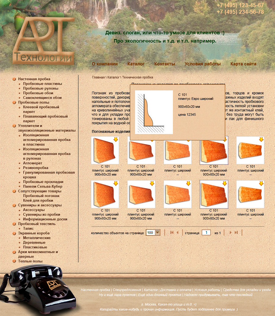 Внутренняя страница каталога (всплывающее окно с описанием).