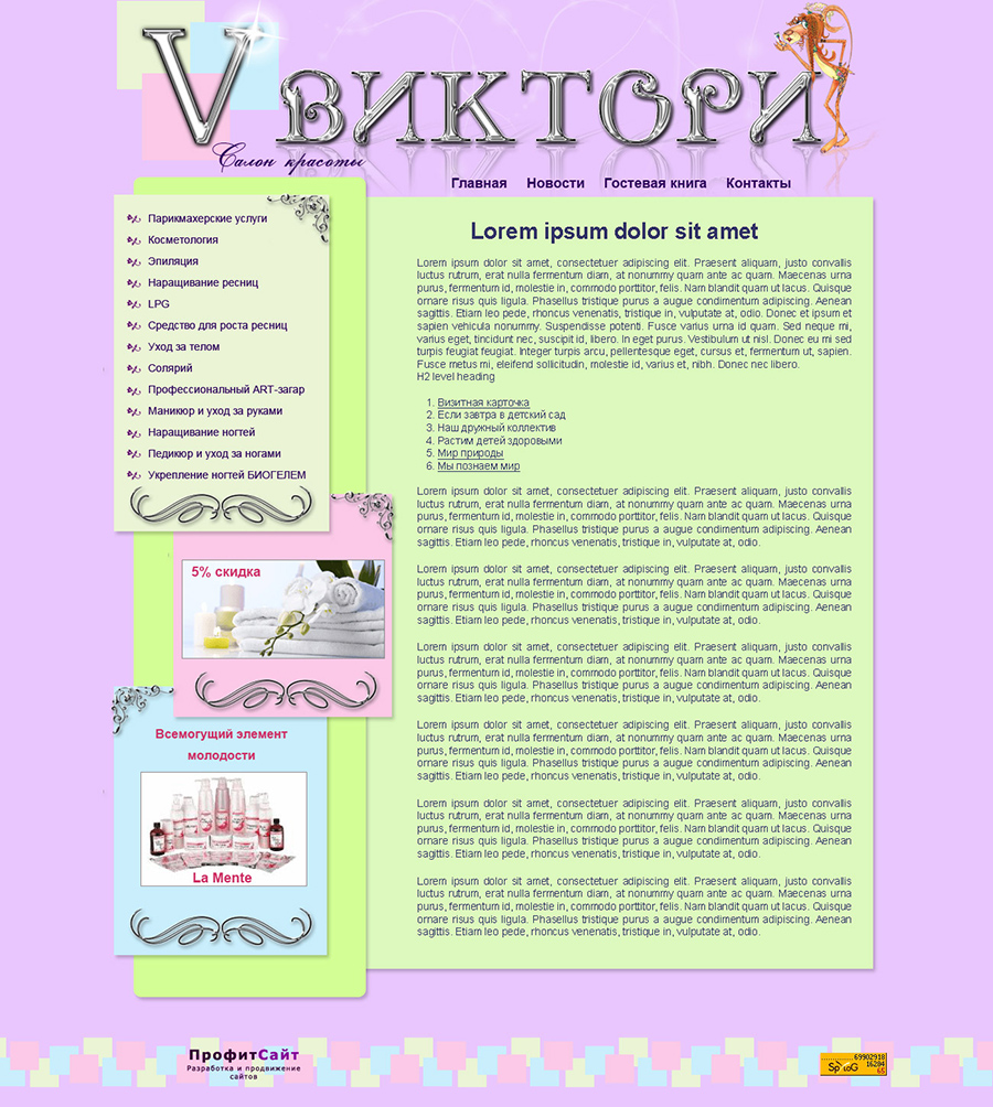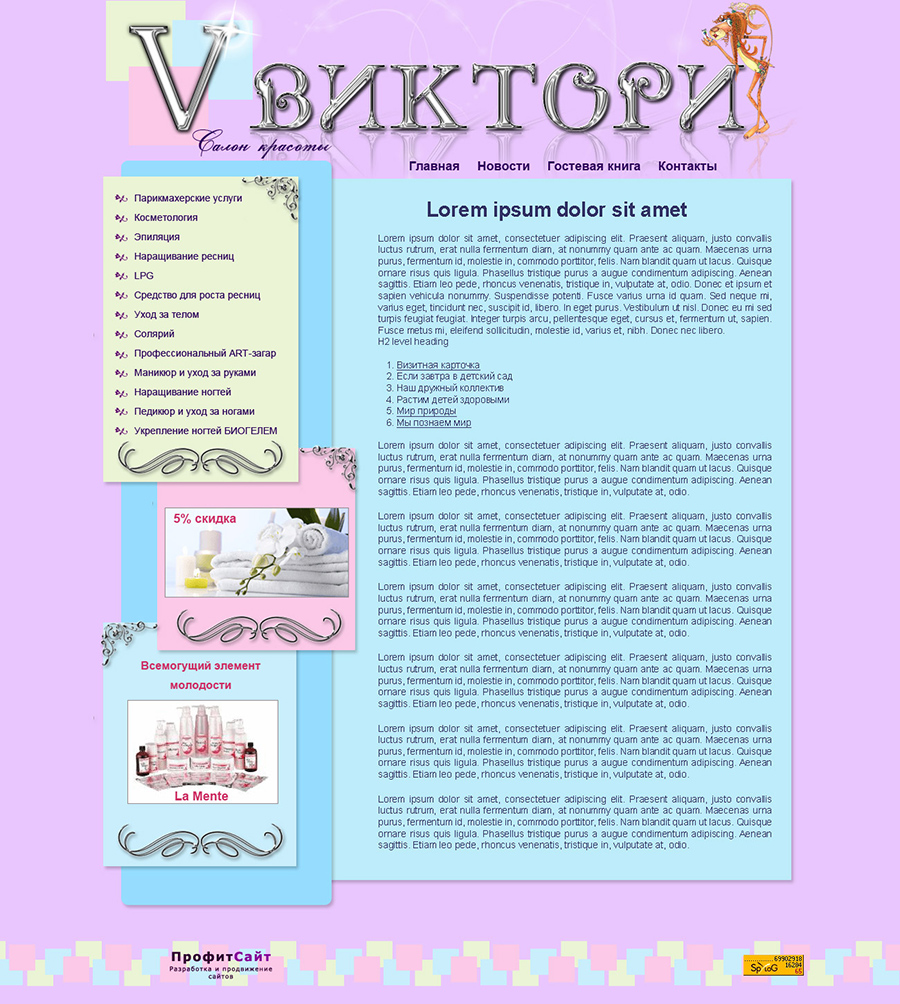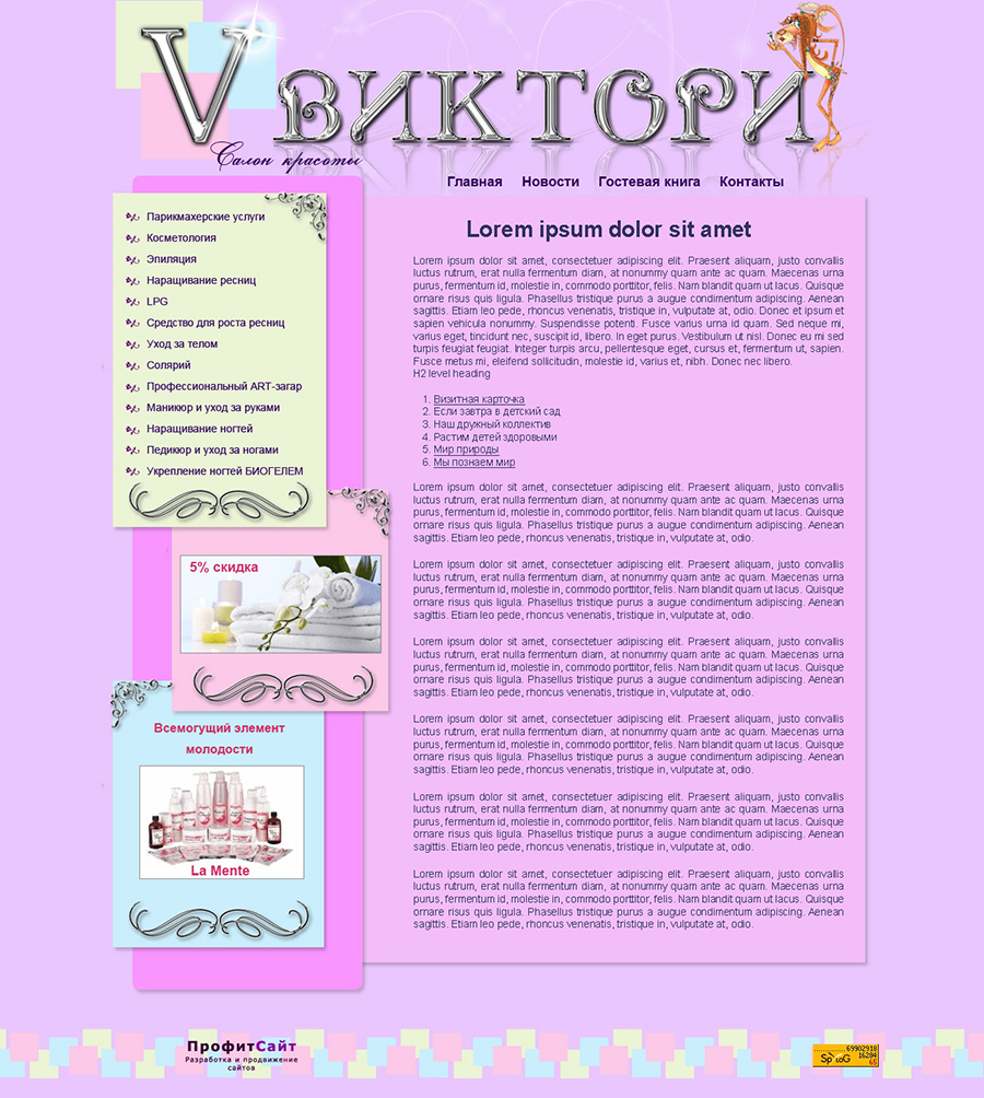 Дизайн разрабатывался по заказу студии ПрофитСайт.