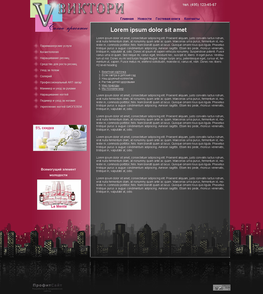 Дизайн разрабатывался по заказу студии ПрофитСайт.